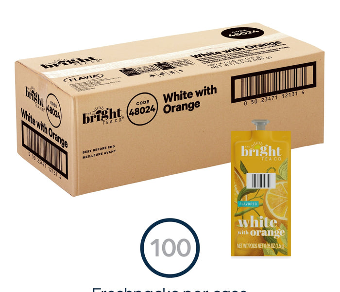 Bright Tea Co.® White Tea with Orange is a smooth and light-bodied flavored white tea with a subtle orange taste. Made for your Flavia® Brewer, this Freshpack produces a single-serve tea.