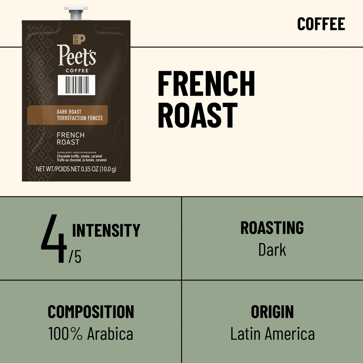 - INGREDIENTS: Peet’s Coffee® French Roast FLAVIA® Freshpacks contain coffee.