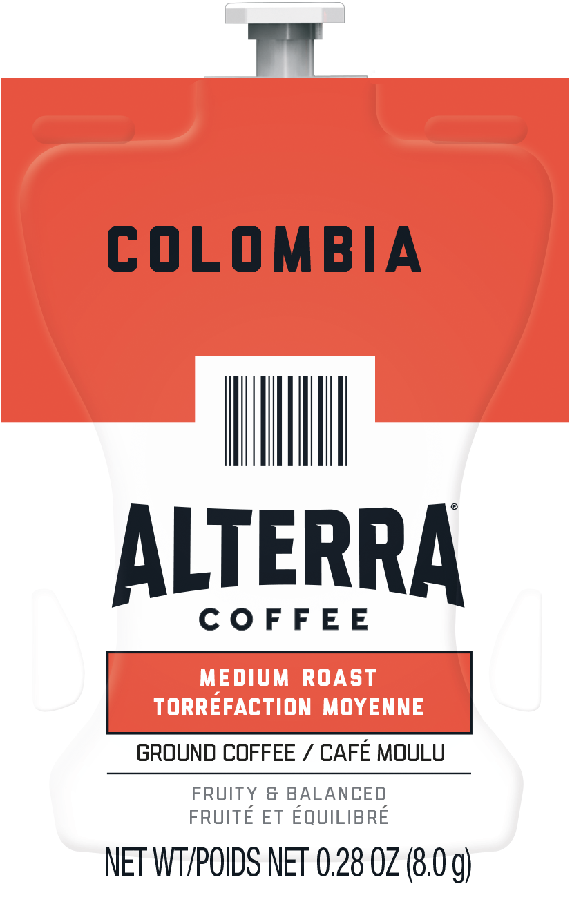 Alterra® Colombia Coffee is balanced Colombian Arabica coffee, medium roast, with aromatic notes of fruit. Made for your Flavia® Brewer, this Freshpack produces drip coffee.
