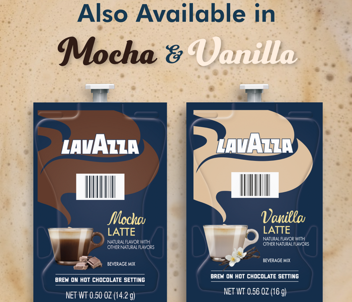 Lavazza Classic Latte combines coffee with sweet aromatic notes and velvety frothed milk for a refined latte experience. Made for your Flavia® Brewer, this Freshpack produces a single-serve latte with 60 Calories and 7 grams of sugar.